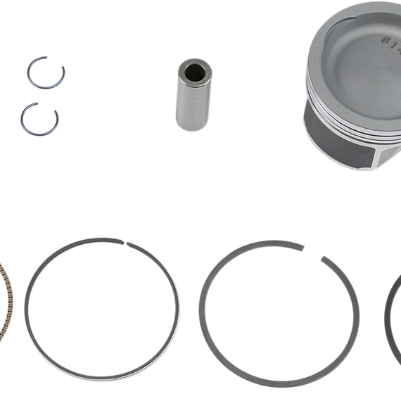Caracteristicas: Quality and construction that meet or exceed OEM Feature improved E-clip design Kits contain piston, rings, pin and clips Rings available separately