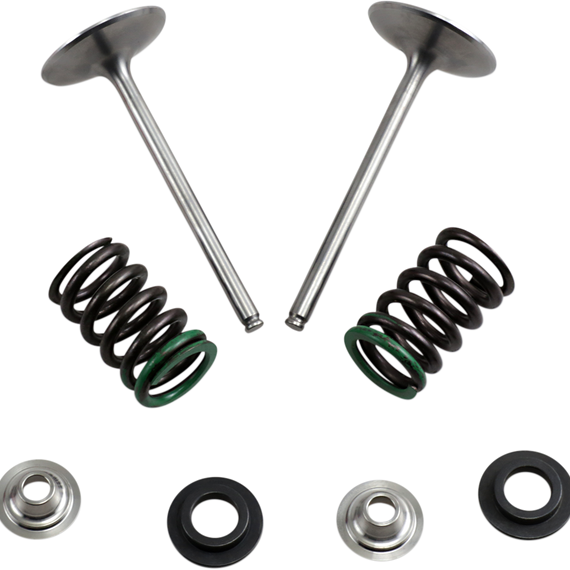Caracteristicas: Offer the off-road enthusiast superior performance at an excellent value Incorporate a high flow design for maximum power and long service life X2 Titanium Valves are full CrN coated for extended service life The X2 valvetrain kits are complete with high performance valves matched with the correct valve spring as well as precision retainers, spring seats and valve locks
