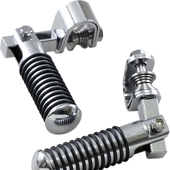 • Includes chromed 1" and 1-1/4" steel clamps; designed for clamping pegs to frames or safety bars