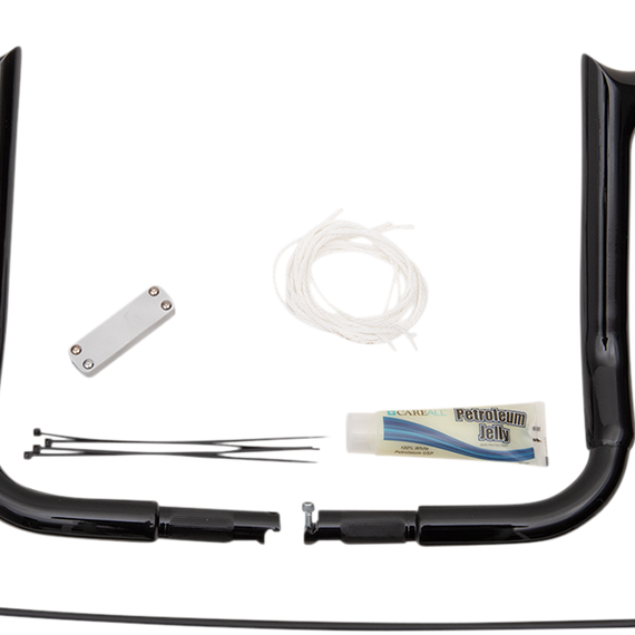 Caracteristicas: Adjustable 1-½” collar next to handlebar controls for custom look Revolutionary bolt-together two-piece handlebar design that takes up half the shelf space, is easy to ship and even faster to install CNC mandrel-bent from 1-1/2" diameter x .095" wall heavy tube EZ install means no more need to fight internal wiring; install handlebar wiring in minutes Billet machined top with a large internal machined radius allows for EZ pulling of wiring (non-welded top corner) Install kits include everything needed to install the handlebars in half the time of other kits due to our design that only extends the existing clutch cable/ clutch line and brake lines Handlebars are knurled and notched for TBW applications Made in the U.S.A. Accepts OEM heated grips Patent No. 10,946,926