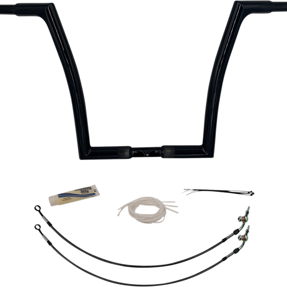 Caracteristicas: Bolt together, two-piece handlebar that takes up half the shelf space and is easy to ship CNC mandrel-bent from 1-1/4" diameter x .120" wall heavy tube EZ Install means no more need to fight internal wiring; you can install wiring in minutes Certain models and heights of handlebar kits will include a brake line extension, clutch line/cable extension and wiring harness, while some of the shorter handlebar kits will only contain a wiring harness or a clutch line/cable extension; each kit is priced accordingly Black handlebars come with black lines/cable extensions; chrome handlebars come with braided lines/cable extensions Knurled and notched for TBW applications Made in the U.S.A. Kits include only the necessary components needed to install handlebars based on the model and height of handlebar Patent No. 10,946,926