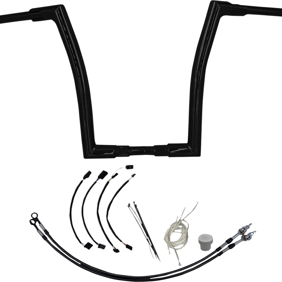 Caracteristicas: Revolutionary bolt-together  two-piece handlebar design that takes up half the shelf space, is easy to ship and even faster to install Adjustable 1-½” collar next to handlebar controls for custom look CNC mandrel-bent from 1-1/2" diameter x .095" wall heavy tube EZ install means no more need to fight internal wiring; install handlebar wiring in minutes Install kits include everything needed to install the handlebars in half the time of other kits due to our design that only extends the existing clutch cable/ clutch line and brake lines Handlebars are knurled and notched for TBW applications Made in the U.S.A. Accepts OEM heated grips Patent No. 10,946,926