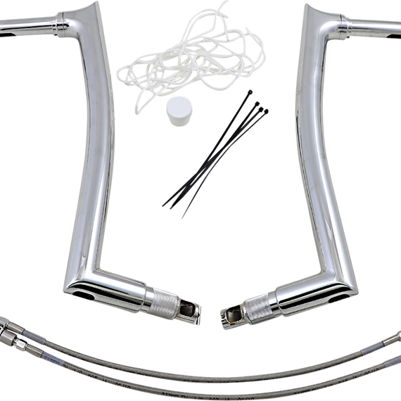 Caracteristicas: Adjustable 1-½” collar next to handlebar controls for custom look Revolutionary bolt-together  two-piece handlebar design that takes up half the shelf space, is easy to ship and even faster to install CNC mandrel-bent from 1-1/2" diameter x .095" wall heavy tube EZ install means no more need to fight internal wiring; install handlebar wiring in minutes Billet machined top with a large internal machined radius allows for EZ pulling of wiring (non-welded top corner) Install kits include everything needed to install the handlebars in half the time of other kits due to our design that only extends the existing clutch cable/ clutch line and brake lines Handlebars are knurled and notched for TBW applications Made in the U.S.A. Accepts OEM heated grips Patent No. 10,946,926