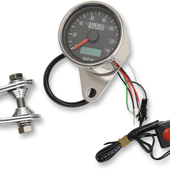 2.4" MPH Programmable Mini Electronic Speedometer with Odometer/Tripmeter - Polished - Black Face
