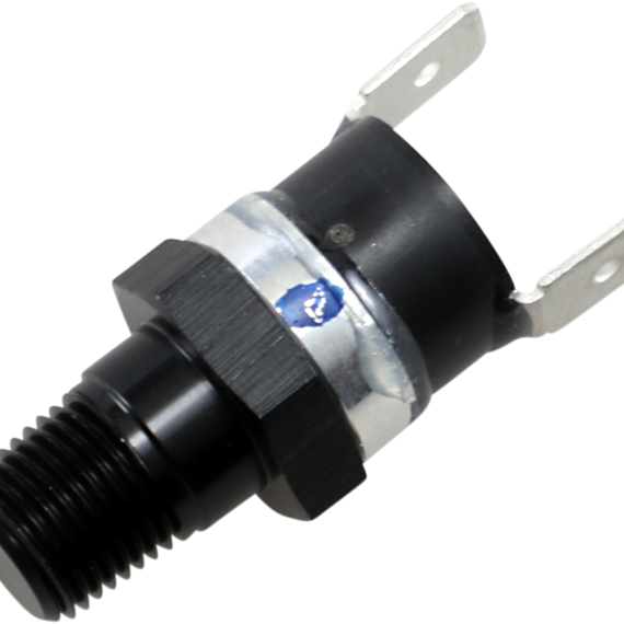 • This bi-metal disc type thermostat installs directly into any 1/8" NPT port and provides an automatic switch to turn on 12V electric fan at the set temperature