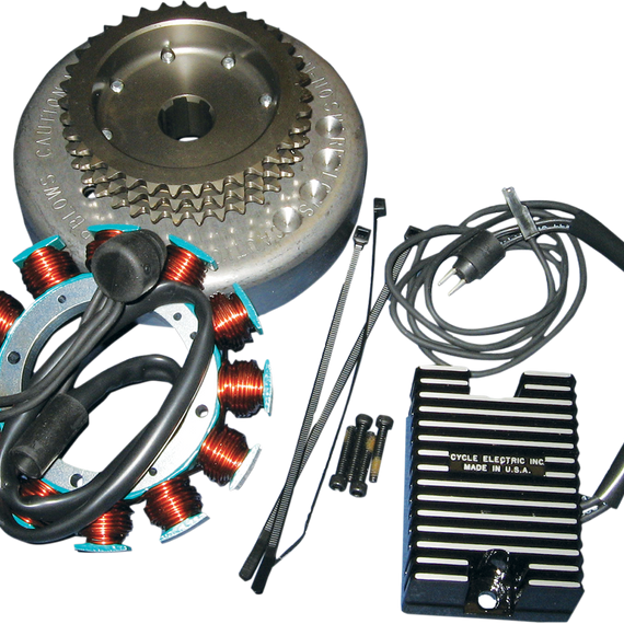Caracteristicas: Kits include stator, rotor, black rectifying voltage regulator and mounting hardware Made in the U.S.A. Adding electrical accessories increases amperage usage. When doing so, it is important to consider amperage ratings of switches and wires. If you draw too many amps through a switch or wire, it will heat up and may burn. Fuses and breakers are sized to protect wiring and switches. DO NOT CHANGE 30A MAIN BREAKER TO A 50A BREAKER. THE SWITCHES AND WIRING WILL NOT BE PROTECTED.