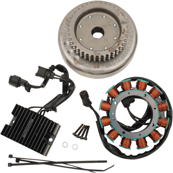 Caracteristicas: Kits include stator, rotor, black rectifying voltage regulator and mounting hardware Made in the U.S.A. Adding electrical accessories increases amperage usage. When doing so, it is important to consider amperage ratings of switches and wires. If you draw too many amps through a switch or wire, it will heat up and may burn. Fuses and breakers are sized to protect wiring and switches. DO NOT CHANGE 30A MAIN BREAKER TO A 50A BREAKER. THE SWITCHES AND WIRING WILL NOT BE PROTECTED.