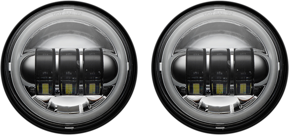 Caracteristicas: ProGLOW™ 4.5” passing lamps also utilize D lenses for a superior field of vision Built in ProGLOW™ color changing Halos plug into ProGLOW™ 5V Bluetooth Controller PART # 2050-0440 (sold separately) Built in ProGLOW™ color changing Halo plug into ProGLOW™ Bluetooth Controller (sold separately) The innovative app connects to IOS or Android providing Bluetooth control of your lights at your fingertips 6000K color temperature DOT/SAE compliant