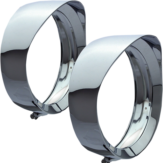 Caracteristicas: Matches 7" Mariah Headlight Bezel Replaces stock trim ring (does not go over the stock ring) 2-1/8" long with 1" traditional rounded visor (top) 1-3/8" long (bottom) Visor cut into bezel Easy to install Hardware included Made in the U.S.A