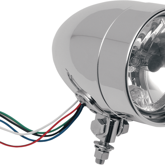 Caracteristicas: Shell is steel construction with a chrome finish Bullet-style shape with a deep-dish trim ring Installs on included chrome mounting block Includes H4 55/60W bulb Features high- and low-beam functions ECE compliant (not DOT compliant)