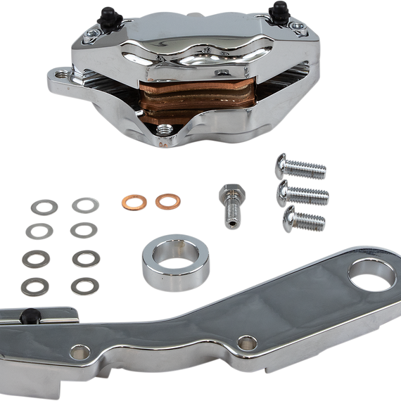 Caracteristicas: Precision CNC-machined billet aluminum construction Feature stainless steel pistons and chrome hardware Quick-change design for easy pad maintenance Dual, hidden bleeders for easy bleeding Differential bore technology Billet aluminum brackets are included where required Made in the U.S.A.