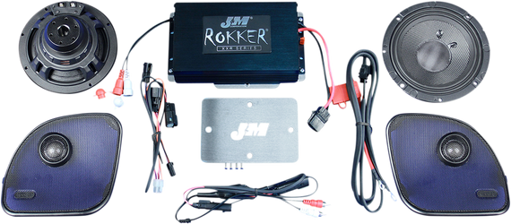 Caracteristicas: The amplifier will be custom tuned for use in conjunction with your specially FLASHED Harley Infotainment radio Fully weatherproof 6.71" ROKKER XXR speakers featuring a high-tech woven-fiber woofer cone & a massive high-density high-flux strength Neodymium magnet structure with large center & perimeter positioned voice coil cooling vents, to provide for maximum heat dissipation when operating at high volume levels for extended periods The custom designed speaker grills with mounted high-output dome tweeters are also weather-proof and shock-proof for maximum long-term durability 100% plug-and-play for your convenience during the installation and to maintain the complete integrity of your Harley's internal wiring harness
