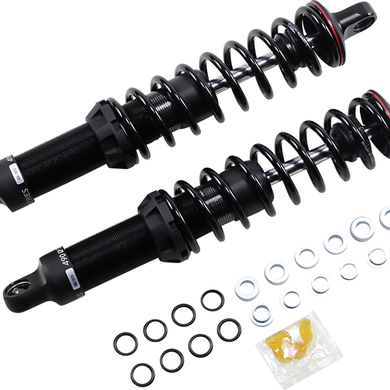 Caracteristicas: True sport performance shocks Feature a high-pressure monotube with deflective disc-damping technology, hand threaded pre-load and rebound adjustment Linear rate spring allows riders to fine tune the damping and consistently withstand extreme temperature ranges and heavy loads Engineered jounce bumper and cup also help smooth out and control bottoming Heavy Duty Applications are recommended for bikes operating at or near the manufacturer's maximum load rating over 50% of the time. Before purchasing or attempting to install shocks that are different than the OEM length, confirm that your wheel travel can be altered without causing clearance issues, such as swingarm/axle to exhaust contact as well as chain/belt guard or tire contact.