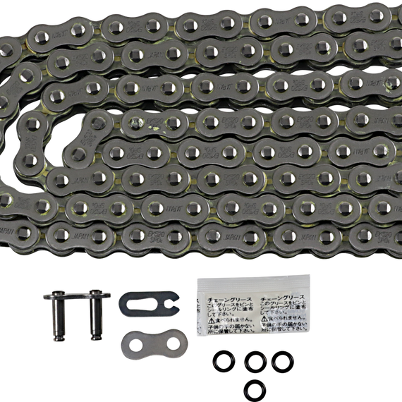 Caracteristicas: Value O-ring chain that doesn't compromise quality or durability High-tech heat-treated steel alloy construction O-ring seals lock in lube, lock out grit Features lightening holes
