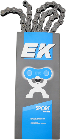 Caracteristicas: Super economical roller chain Standard chains have two-point pin riveting Special steel alloy, solid roller and pre-stretched, shot-peened parts Comes with clip-type master link