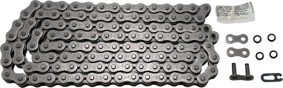 Caracteristicas: Assembled using Japanese steel Surface treated and hardened pins Shot-peened rollers for increased strength and stress resistance Heat-treated plates, bushings, and rollers Weight-optimized design X-ring offers 150%+ chain life