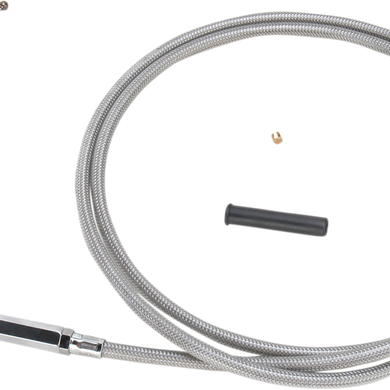 Caracteristicas: Cables feature polished-chrome fittings and stainless-steel braiding outer casings, tempered-steel inner conduit and an inner nylon liner for smooth operation and long life Braided cables feature outer housings coated with a non-yellowing clear covering for abrasion resistance Length given is the length of the outer housing only, excluding the elbow Cables will also fit late style Mikuni carbs
