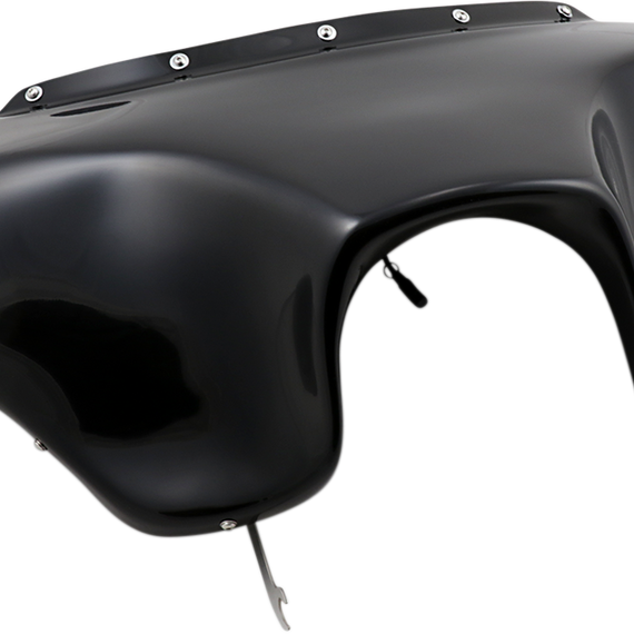Caracteristicas: Superb wind protection, great sound with a classic style Constructed of hand-laid fiberglass making it stronger than ABS plastic and only 34 lb. Includes Jensen JHD40BT AM/FM/WB/USB Bluetooth stereo Equipped with two 5" speakers and two 6" speakers Includes a 12V power socket for charging and running accessories and a USB input port Handlebar control is die cast aluminum and waterproof with rubberized buttons Concealed internal antenna for a clean look Mounts on OEM windshield mounting points using included hardware Includes a 12" clear windshield; will accept 96-13 FLHT OEM style and aftermarket replacement windshields (sold separately) (some drilling and trimming may be required) Made in the U.S.A.