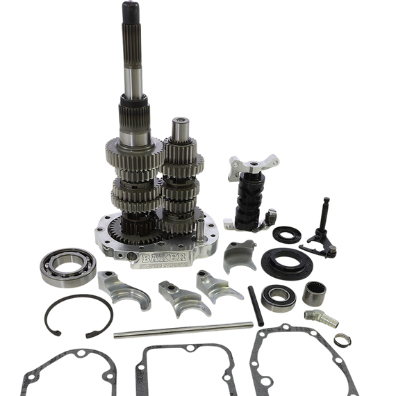 Caracteristicas: Includes polished trap door, all gears, mainshaft, countershaft, shifter drum, detent components, bearings, snap rings, gaskets and hardware Significantly smoother shifting than stock due to a roller detent shift drum with reduced inertia and gear dogteeth with lead-in ramping Gear ratio of 2.93 or 3.24 1st gear and .86 6th gear available Fits into stock and most aftermarket 5-speed transmission cases Made in the U.S.A.