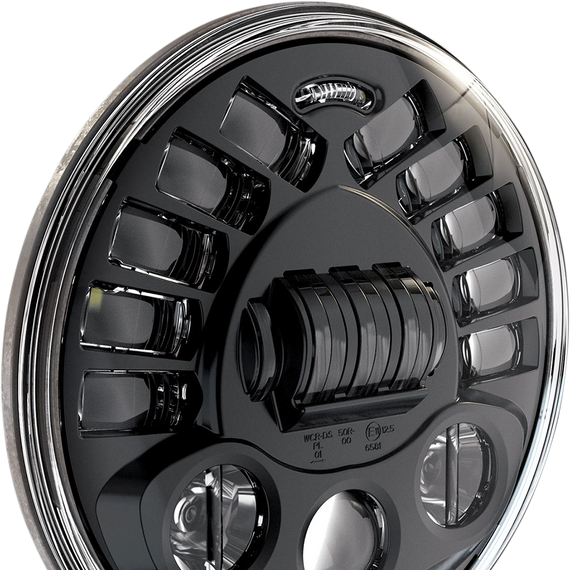 Caracteristicas: Improved to feature JW Speaker's Adaptive technology providing maximum ditch-to-ditch light output where you need it most Adaptive technology enables the light to sense when the bike is leaning so it can redirect the beam to illuminate dark corners while also providing a superior beam pattern 1,500 feet down the road The low-profile housing offers a plug and play installation 1150 effective lumens (high beam), 850 effective lumens (low beam) Low beam = 1.9 amps @ 13.5 volts High beam = 2.9 amps @ 13.5 volts 5000k color temperature Plug and play installation SAE and DOT compliant