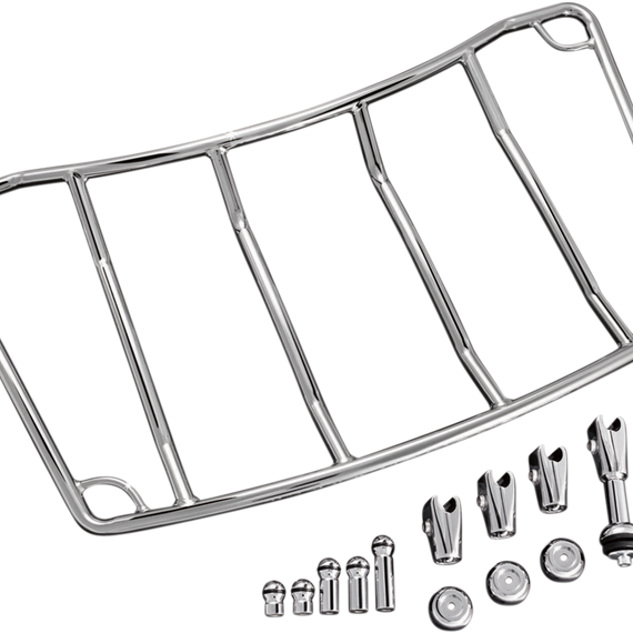 Caracteristicas: Uses adjustable mount standoffs; can be mounted to any trunk lid, flat or curved Built-in corner loops keep luggage secure 1/2" tubular design allows use of flag mounts Kit includes a pair of mount extensions to fit the rack to trunk lids with a steep downward rear swoop, or lids with a trunk lid spoiler installed Measures 21" W x 12" L