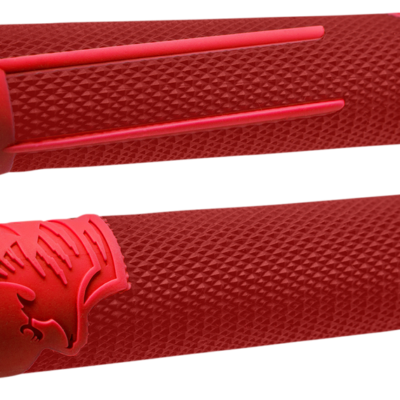 Caracteristicas: Grips feature a large diameter (30.5 mm) with offset padding towards the rider for improved comfort Soft pro compound provides excellent shock absorption Surface pattern specifically designed for improved traction and vibration dampening Aluminum reinforced ends provide extra durability against grip blowout provide an aggressive feel in turns Angled rib pattern adds control without a bulky feel Uses our race-proven version 2.1 lock-on single clamp system Molded over the aluminum endcap, the hard plastic end provides durability but will not gouge
