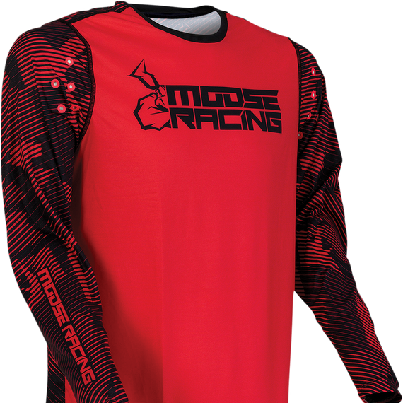 Caracteristicas: Light-weight stretch polyester chassis Laser cut vent holes Custom stretch collar Quick drying fabric Non-restrictive stretch mini cuffs High-quality sublimated graphics
