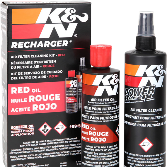 Caracteristicas: A six-step maintenance system designed to recharge any K&N oiled cotton air filter Restores airflow efficiency, and will bring your air filter to like-new condition Kit includes: Air Filter Oil (6.5-ounce aerosol can or 8-fluid ounce bottle), a 12-fluid ounce spray bottle of Power Kleen Air Filter Cleaner, and service decal