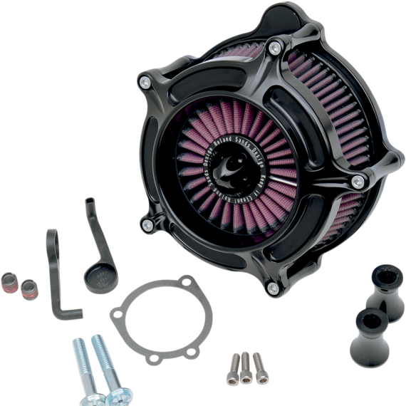 Caracteristicas: Backing plate promotes smooth airflow into carb/throttle body Exposed filter design offers enhanced airflow Built-in internal crankcase breathers Laser-engraved center nose cone All mounting hardware included High-volume K&N air filter Made in the U.S.A.