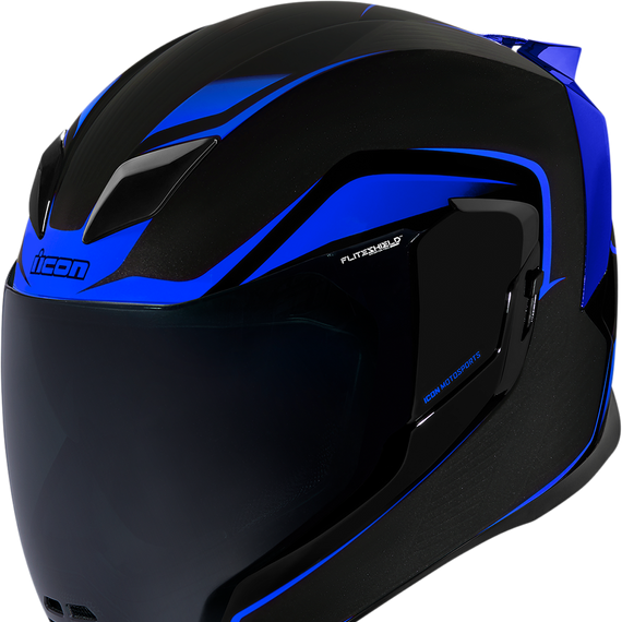 Caracteristicas: Injection molded polycarbonate shell for strength Multiple oversized intake and exhaust ports Fog-Free Dropshield™ with exterior switch Quick-change Fog-Free Fliteshield™ with sideplates Removable molded breath deflector and chin curtain Removable Hydradry™ moisture wicking liner Recessed twin channel supervent cooling system the Dropshield™ visor must only be used while the main face shield is in the fully closed position Internal speaker pockets work with ICON's R.A.U. Bluetooth device