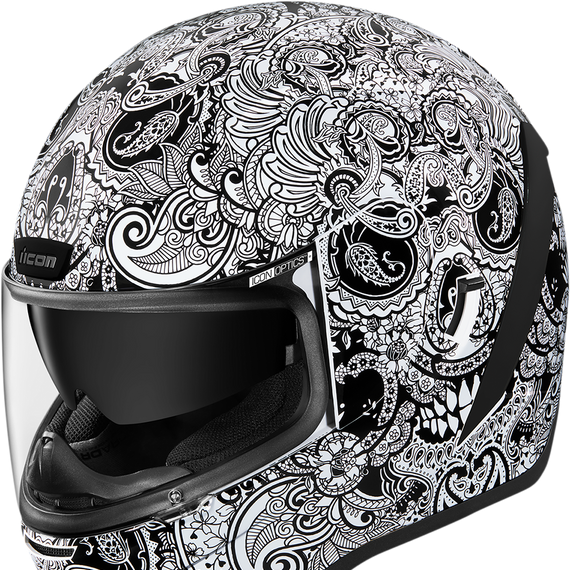 Caracteristicas: Injection molded polycarbonate shell for strength Internal airflow geometry and continuous venting system keep rider cool Fog-free Icon Optics™ shield with Rapid-Release™ system Prolock™ positive shield-locking system TracShield™ shield with tear-off posts available; sold separately Internal Dropshield with exterior switch Comfortable sculpted neck roll Removable molded breath deflector Fully removable Hydradry™ 3-piece moisture wicking liner Internal speaker pockets work with Icon's R.A.U. Bluetooth® device Does not ship with PSC or MFJ certification stickers unless purchased from an authorized dealer in that country The Dropshield™ visor must only be used while the main face shield is in the fully closed position