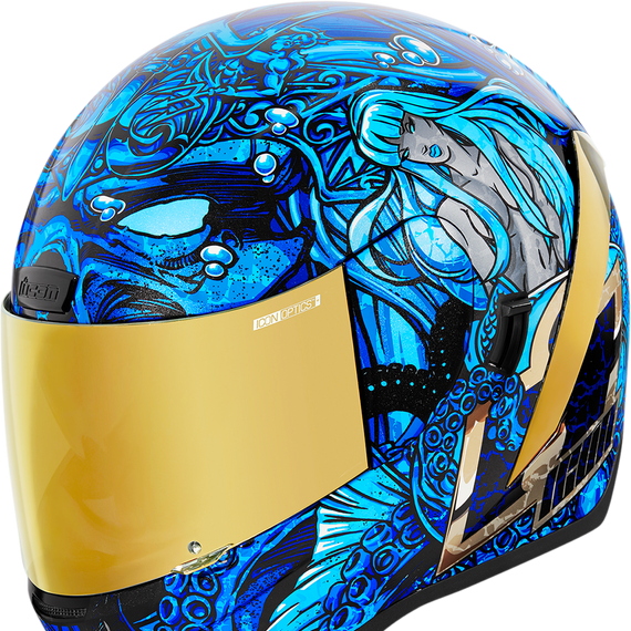 Caracteristicas: Injection molded polycarbonate shell for strength Internal airflow geometry Continuous venting system Sculpted neck roll Fog-free ICON Optics™ Shield with Rapid-Release™ System Prolock™ positive shield locking system Internal Dropshield™ with exterior switch The Dropshield™ visor must only be used while the main face shield is in the fully closed position Removable molded breath deflector Removable Hydradry™ 3-piece moisture wicking liner Internal speaker pockets work with ICON's R.A.U. Bluetooth device Includes Clear and RST Dark Gold ICON Optics™ Shield