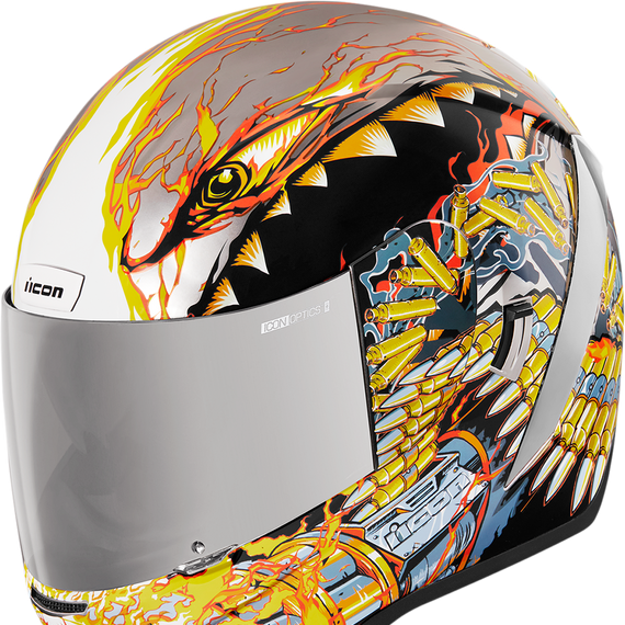 Caracteristicas: Injection molded polycarbonate shell for strength Internal airflow geometry Continuous venting system Sculpted neck roll Fog-free ICON Optics™ Shield with Rapid-Release™ System Prolock™ positive shield locking system Internal Dropshield™ with exterior switch The Dropshield™ visor must only be used while the main face shield is in the fully closed position Removable molded breath deflector Removable Hydradry™ 3-piece moisture wicking liner Internal speaker pockets work with ICON's R.A.U. Bluetooth device Includes Clear and RST Silver ICON Optics™ Shield