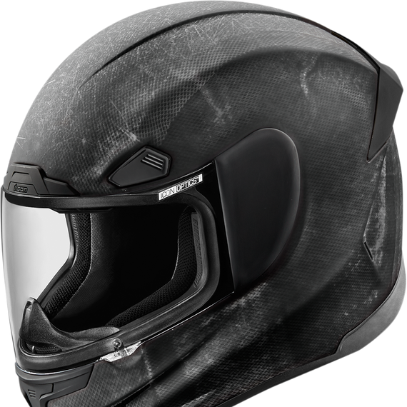 Caracteristicas: Increased angle of attack designed to maintain visibility and stability Compressed, compact shape Sculpted neckline avoids jacket or suit interference Carbon fiber, Dyneema® and fiberglass composite shell for extra strength; Construct helmet has a rough imperfect finish Oversized intake and exhaust ports vent hot air and help prevent fogging Removable molded breath deflector reduces shield fogging Icon Optics™ shield Prolock™ secure shield locking system Nine intake and five exhaust vents Rear spoiler for reduced helmet buffeting Fully removable Hydra-Dry™ moisture-wicking interior Construct has a naked amber weave finish that has been coated in rich gloss clear-coat All World Standard meets or exceeds the following: DOT FMVSS 218 (USA), ECE 22-05 (Europe), SAI AS1698 (Australia), & SG (Japan) safety and testing standards