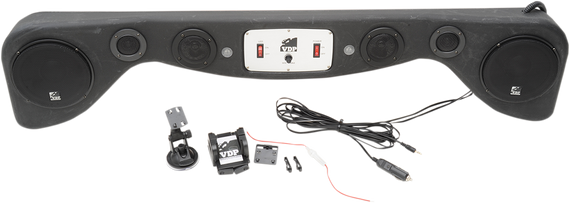Caracteristicas: No stereo required; simply plug in a smart phone, iPod®, MP3 or any other auxiliary sound source Rugged, weather-resistant plastic body Features six pre-wired speakers from Boss Audio: two 6" high-output woofers, two 2" mid-range and two 1" super dome tweeters Speakers have carbon fiber weather-resistant cones with butyl rubber surrounds 100W amplifier with on/off switch; 200W max high output while drawing only 4 amps or less Plugs into 12V power source using included 12' power cord Includes iPod®/MP3 docking station and 12' auxiliary cord Dual overhead LED map lights in the bar's center Installs easily with included hardware, instructions and wiring harness Measures 45" L x 9" W x 3.5" H Vehicle specific mounting brackets sold separately