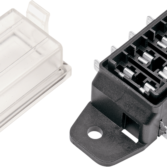 Caracteristicas: Standard ATC 4-way fuse holder with a clear water-tight (sealed) cover 50-Amp max for all branches .250 male blade (side blade insertion) Mounting holes center-to-center are 2.56" Mounting hole diameter is 7/32" Made in the U.S.A.
