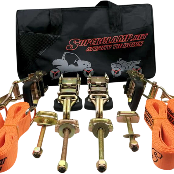 • Kit includes 4 ratcheting tie down straps and 4 genuine Superclamp deck hooks