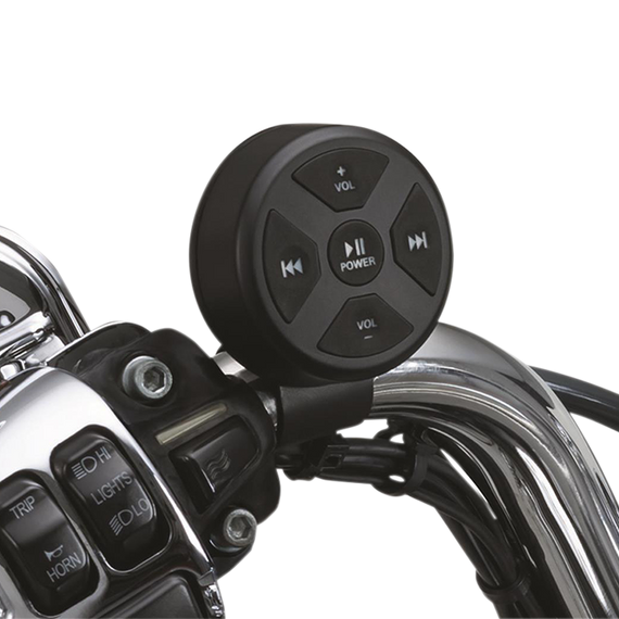 Caracteristicas: Turn any smartphone or mp3 player with Bluetooth capabilities into the ultimate mobile sound system Wirelessly connects your Bluetooth-enabled device to Kuryakyn Road Thunder Speaker Pods, The Sound of Chrome speakers, or almost any other self-amplified speakers This universal Bluetooth audio controller replaces the head unit and is easy to install Compatible with most Bluetooth devices, including Android and iPhone Includes two adjustable bar mount brackets for 7/8" through 1" bars and 1-1/8" through 1-1/4" bars Easy to install with hassle-free auto pairing and five front panel touch controls Durable weather-proof design tested in accordance with IP66 rating requirements Includes two adjustable bar mount brackets: 7/8" through 1" and 1-1/8" through 1-1/4" Includes power, ground, and output connections