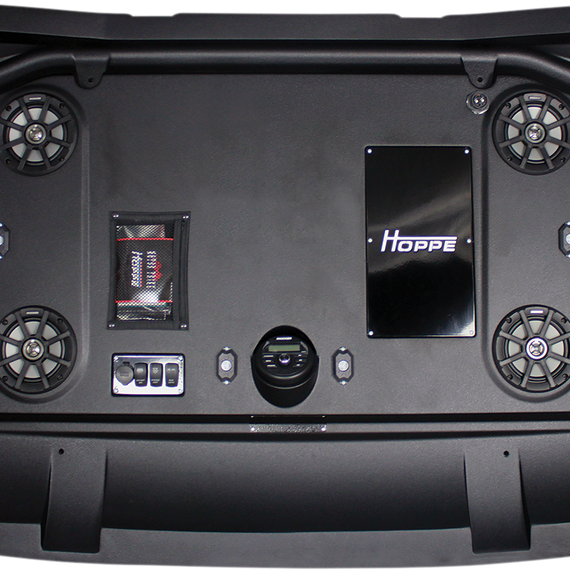 Caracteristicas: Front 31” 150W sleek, high-output single-row LED light bar Rear 11” 50W sleek, high-output single-row LED light bar Backlit switches for light bars and interior lights - easily control your lights at night RBG LED Interior light kit includes four lights Phone app-controlled (iPhone® & Android® compatible) Lights dance to the beat of your music Kicker® KMC2 multimedia gauge-style marine receiver with Bluetooth Bluetooth audio streaming AM/FM digital tuner USB input and USB charging RCA aux input headphone jack Kicker® 6.5” PS-Series speakers Neodymium magnets for high power with low weight Lightweight, weather-resistant polymer baskets Waterproof suspension system Kicker® PX series amplifier 300W – 4 x 75W full-range amplifier Weather-resistant, IP66 rated Active crossover Infused resin process layered with directional fiber orientation for ultimate rigidity and strength Strengthened edges to protect from tree branch strikes Hoppe liner coating for durable, all-weather protection All cage clamp fasteners hidden on top side for smooth yet aggressive design Zipper pockets safely secure your phone on the most rugged trails