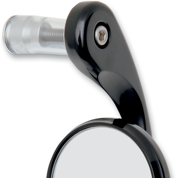 Caracteristicas: Left or right is determined as sitting on the bike with mirror mounted under handlebar Will fit most handlebars and clip-ons with an outside diameter of 7/8" to 1" CNC-machined billet aluminum with stainless steel hardware Gooden-Tite¶© bushing mounting system to reduce vibration 2-1/2" diameter Fully adjustable Made in the U.S.A.