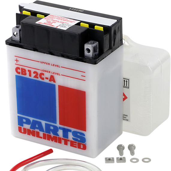 • Kit includes battery, pre-measured acid pack, red filler tube, hardware kit and clear vent tube