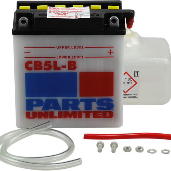 Caracteristicas: Powerful starting power at a great price! Parts Unlimited Heavy-Duty batteries are built to the same exacting specifications and quality-control standards as OEM Rugged and provide more cranking power over standard batteries Lead calcium alloy reduces water loss and service by 66% compared to standard batteries Includes anti-sulfation chemical formulated to reduce sulfate crystal buildup on the battery plates Reduces self-discharge for longer time between charges Fiberglass separators improve acid flow Kit includes battery, pre-measured acid pack, red filler tube, hardware kit and clear vent tube