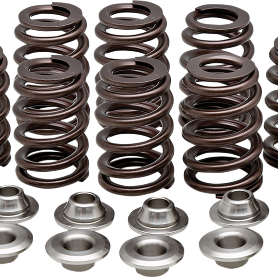 Caracteristicas: Progressively wound springs using Kobe super-clean, chrome silicon-based wire that is heat treated and shot peened Tight-tolerance, FEA-designed hardened steel Posi-Locâ„¢ style upper retainers to ensure correct assembly height and resist keeper "pull through" Hardened steel basewashers control lateral movement Kits use OEM-style valve keys (sold separately) Made in the U.S.A.