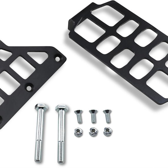 Caracteristicas: Strengthens A-arm mounting points to prevent costly repairs Protects entire A-arm/steering area against rocks or other hard hits Durable steel is zinc plated black for great appearance Helps to prevent stock cast steering mount from breakage Fit both 2- or 4- stroke models and can be used with skid plates Includes all hardware and installation instructions Brace up the well-known "weak link" in Ski-doo front ends Frame braces or skid plates can still be used Includes all hardware and instructions for easy mounting Performs double duty as module brace and skid plate