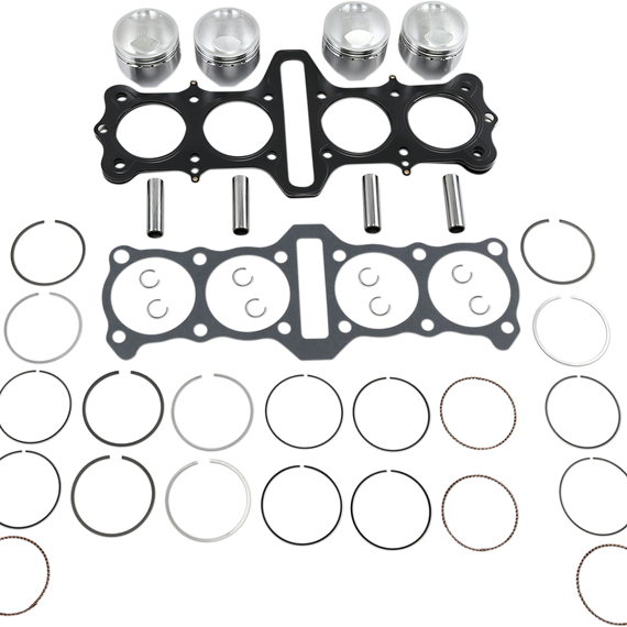 Caracteristicas: Complete engine kits include pistons, ring sets, pistons pins, retainer clips and head gasket All Wiseco pistons are forged from aerospace aluminum alloys on Wiseco's state-of-the art forging presses Built on a legacy of championships for over 60 years by American craftsmen Wiseco pistons have the latest dyno-tested technology to out-perform the competition