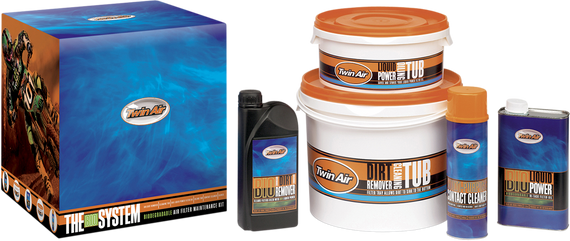 Caracteristicas: The System is the full filter care solution Kit comes with everything needed to clean Twin Air air filters in a sturdy storage box complete with carrying handles Kit includes: a Twin Air cleaning tub, oiling tub, BIO Dirt Remover (1 liter), BIO Liquid Power Filter Oil (1 liter), contact cleaner and rubber gloves Cleaning tub is resealable and comes with a filter tray that allows dirt to sink to the bottom, away from filters Oiling tub allows filters to be submerged for easy, even oiling When not in use, the oiling tub is resealable, enabling users to save unused filter oil