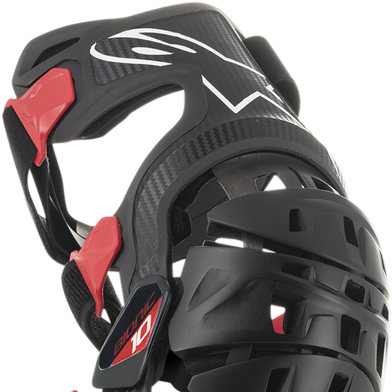 Caracteristicas: Features lightweight hybrid frame construction of carbon composite cores over-injected with an advanced fiber reinforced polymer Innovative design and optimized material utilization of the exoskeleton frame construction make the knee brace even lighter than its predecessor, yet provides high structural strength and support Performs at temperatures as low as -4°F Double-pivoting hinge system incorporates tool-free, fast, easily exchangeable extension stops to help prevent hyper-extension injuries Patented lightweight and highly-ventilated double-wall knee-cup system offers strong impact force dispersion and absorption while ensuring maximum coverage in all riding positions Ergonomically sculpted knee-cup is constructed from a triple segmented polymer for flexibility and adaptivity that is backed with light padding for comfort Knee-cup position is secured accurately in place by an innovative integrative mechanical guiding system to allow multi-directional movement Highly-ventilated channeled padding and mesh zones provide optimized ventilation and airflow Soft comfortable lateral knee padding avoids pressure points Additional space padding enables a high-adjustability for a personal fit Lightweight single straps on upper frames and buckle system promotes secure fitment of brace in all riding positions and effortless mounting C-Frame strap system holds braces perfectly in place