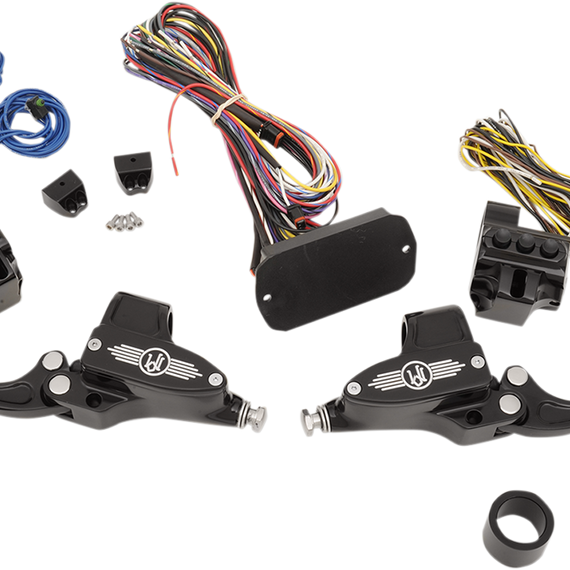 Caracteristicas: CNC machined from billet aluminum Kits include brake master cylinder, brake light switch, starter interrupt switch, left and right side switch housings, throttle housing, clutch side spacer, CAN Bus controller and perch Hard anodized bore to eliminate wear Made in the U.S.A. 14-16 FLHT/FLHX applications require the additional purchase of the following OEM #s for a complete installation: one each of OEM part #s 71735-08, 71822-98, 71821-98, 71825-96A and two of OEM part # 71618-98