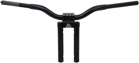 Caracteristicas: Accepts stock controls 8 bolt billet aluminum clamp 3-inch on-center risers High-strength steel tubing construction Designed for internal wiring Made in the U.S.A.