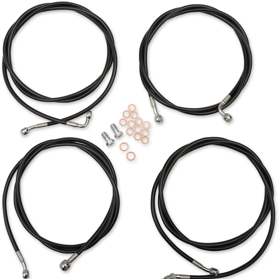 Caracteristicas: Standard kits include clutch line, brake lines, chrome "T" brake line junction, banjo bolts, fittings and copper crush washers Correct length brake/clutch lines and wire extensions included to complete a handlebar swap Electrical wire extensions NOT included (available separately) Made in the U.S.A. Kits are based on using 2" risers with Ape Hanger handlebars